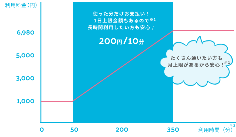 【損なし】使った分だけ!10分200円の従量課金 最低1,000円(50分)〜利用可能。